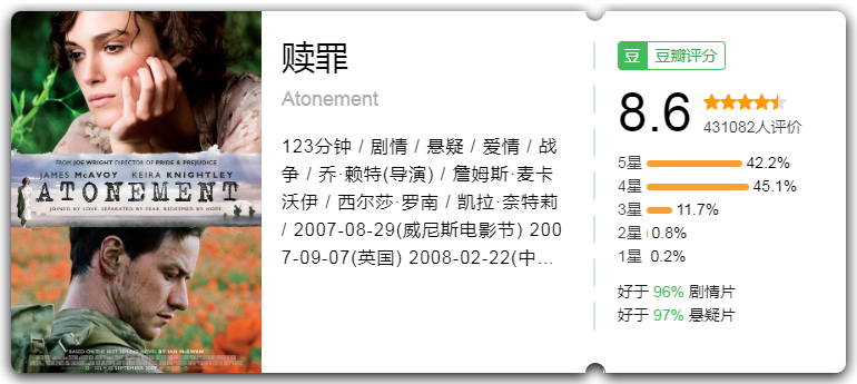 主演:詹姆斯·麦卡沃伊 / 西尔莎·罗南 / 凯拉·奈特莉